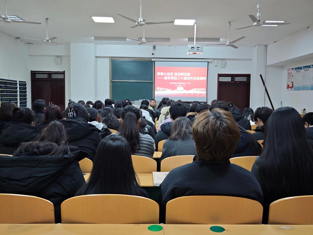 为深入学习贯彻党的二十届四中全会精神,引导青年学生坚定理想信念、强化使命担当,11月18日,bwin·必赢登录入口举办“青春心向党 奋进新征程”宣讲党的二十届四中全会精神主题党课。本次党课由学院党委书记仲冲主讲,学院部分教职工、学生党员、学生骨干、学生入党积极分子参加。
