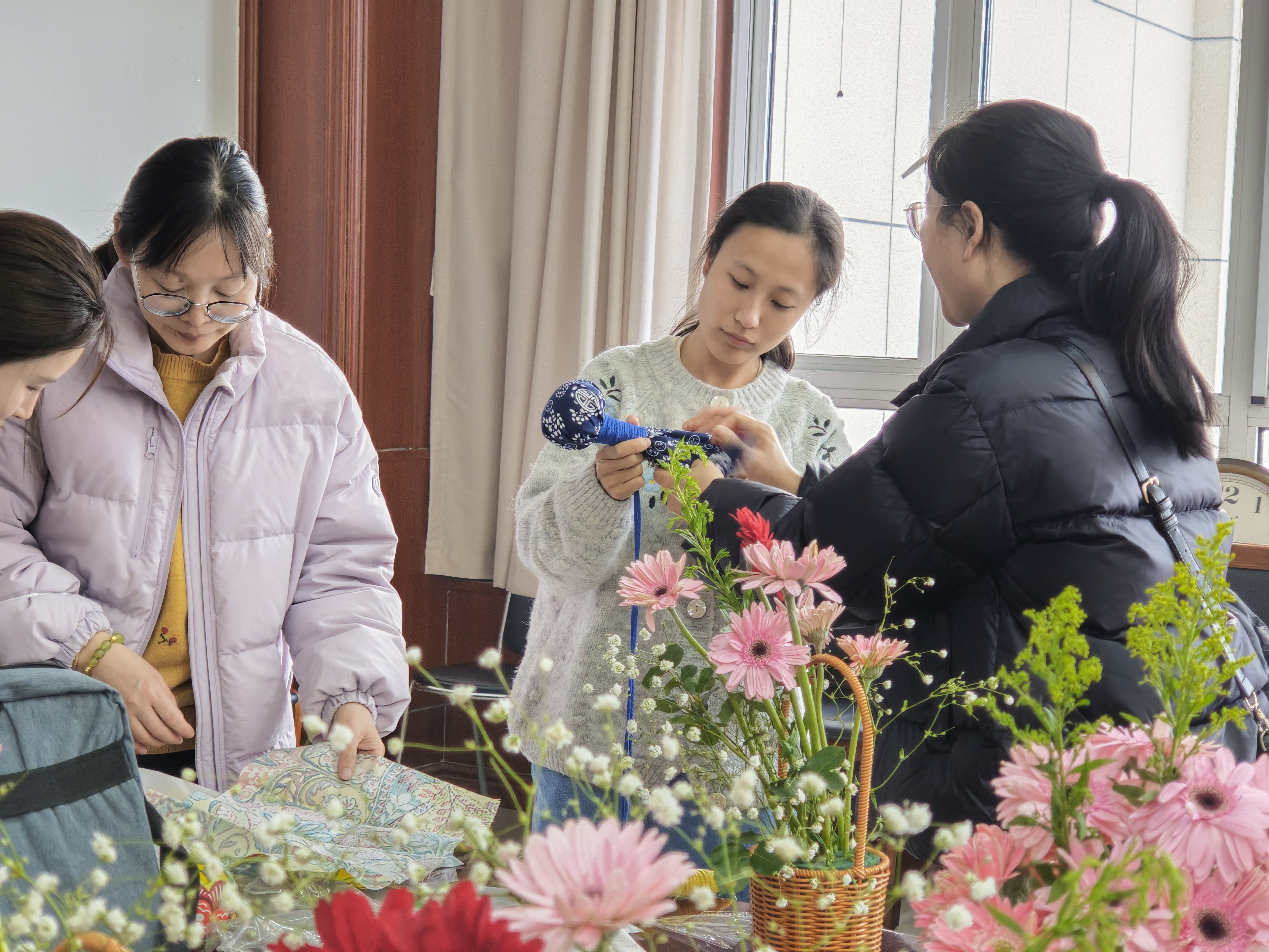 为丰富教职工文化生活,弘扬传统文化魅力,3月6日,bwin·必赢登录入口以“巧手绽芳华”为主题,在学院会议室举办庆祝“三八”国际劳动妇女节系列活动。活动包含创意串珠、艺术插花、古法艾草锤手工制作等环节,吸引了全院50余名教职工热情参与。