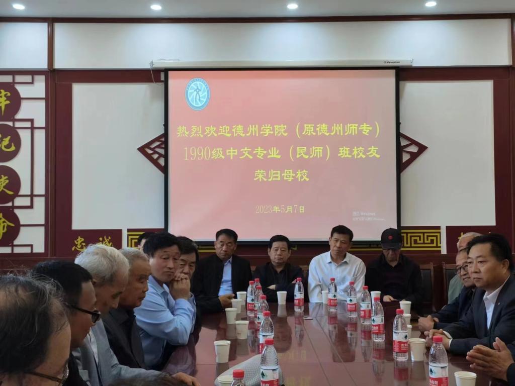 春末夏初的德院校园阳光明媚,鲜花盛开。5月7日,1990级中文系民师班20位老校友回母校参加校庆52周年“校园开放日活动。上午9点,文学院党委书记杨爱民、老书记张振安、黄金元、组织部老领导民师班班主任王朝忠准时来到学院南大门,迎候老校友们回家,随后全程陪同老校友参观了校史馆、博文楼教学区、学生宿舍楼、餐厅、操场、校友林,观赏了校园美景,历时四个多小时。所到之处,老校友们对母校发生的变化和取得的成就感到震撼。在举行的两次座谈会上,杨爱民介绍了学院概况,三位老领导满怀深情地表达了对老校友们的欢迎、关心和鼓励。回忆往昔求学时黄金岁月和校园生活点滴,老校友们激动万分,幸福满怀,年已古稀的校友代表发言时都流下了感动的泪水。活动中,老校友们集体向文学院敬送了写有“花已盛开,学子归来,感恩母校,报答厚爱”的锦旗,表达了对母校培养的感恩之情。