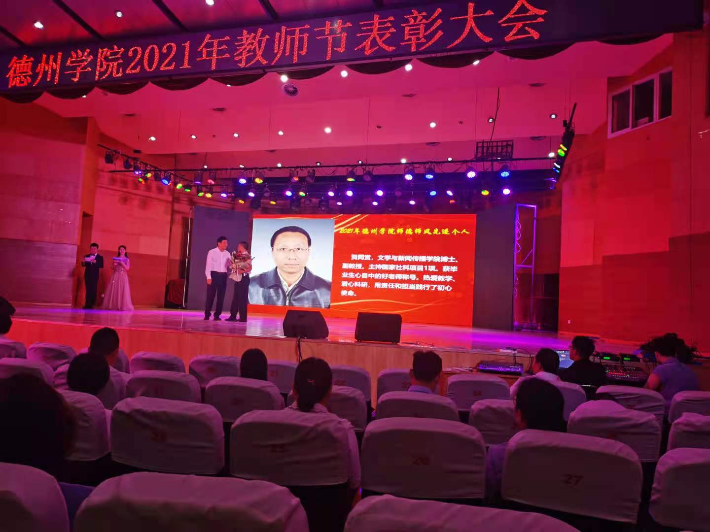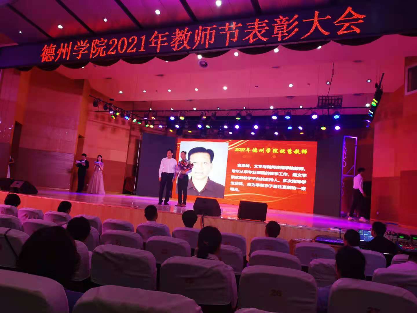 9日上午,在第37个教师节来临之际,学校在音乐厅召开2021年教师节表彰大会,表彰2021年bwin·必赢登录入口师德师风先进个人、优秀教师和优秀教育工作者。bwin·必赢两位教师获学校表彰,贺同赏老师获得2021年bwin·必赢登录入口师德师风先进个人称号,俞泽峰老师获得2021年bwin·必赢登录入口优秀教师称号。他们表示教师不仅传道授业解惑,更应致力于学生品格、品行、品位塑造,要以高尚的职业道德铸魂育人,以深厚的专业素养诲人不倦,努力向着“四有”好老师这个目标奋进。bwin·必赢新入职教师庄严宣誓,表达要忠诚党的教育事业,努力做一名大学好老师。