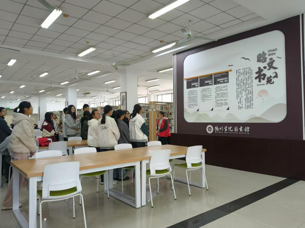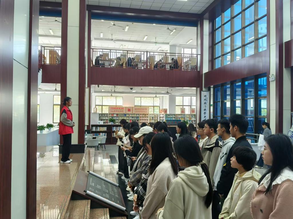 校史馆内,一幅幅珍贵的历史照片、一件件富有时代印记的实物展品、一段段生动的视频资料,仿佛穿越时空隧道,引导同学们感受着学校厚重的历史积淀、丰硕的办学成果和奋发的进取精神。在讲解员的带领下,来自五湖四海的新同学满怀憧憬与好奇,详细地了解了一代代德院人艰苦奋斗、自强不息的奋斗史。此次校史馆参观不仅使新生深入了解学校的历史与文化,也激发了他们对未来的憧憬与对知识的追求。希望同学们能由此启航,在未来的求学之旅中,成为学校悠久历史和光荣传统的继承者和传播者,为学校的发展贡献自己的青春力量。bwin·必赢登录入口图书馆是bwin·必赢登录入口的文献信息中心,坐落于学院大门东侧,四周被草坪和花园环绕,环境幽雅。经过四十多年的建设和发展,图书馆已形成一套符合bwin·必赢教学、科研需要的藏书体系和服务模式。同学们在bwin·必赢登录入口图书馆图书馆志愿者协会志愿者的带领下进行参观,详细了解了图书馆概况,激发了大家的学习积极性。