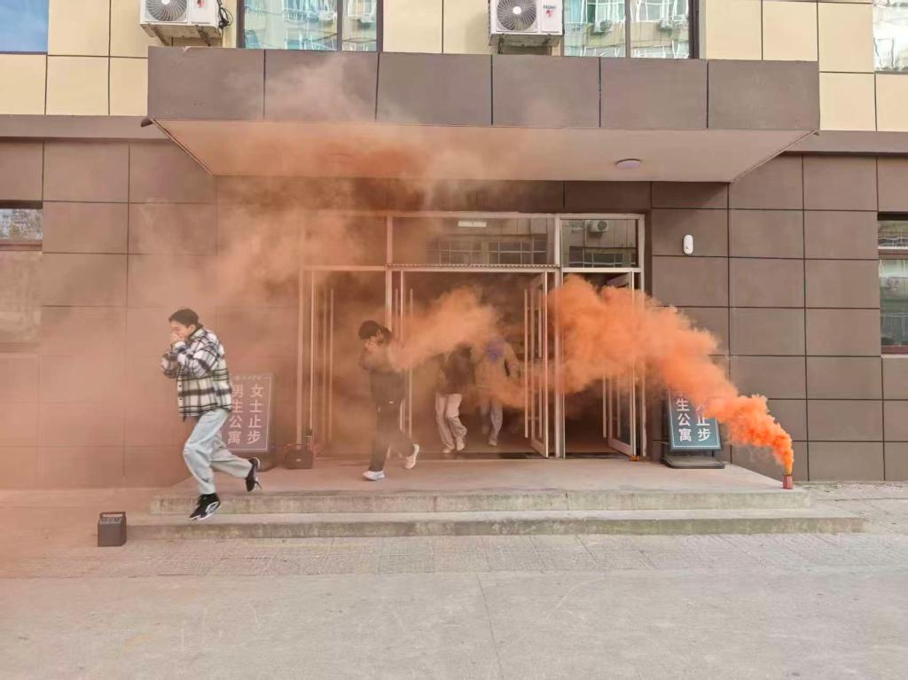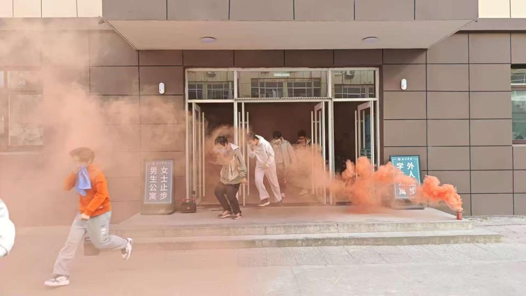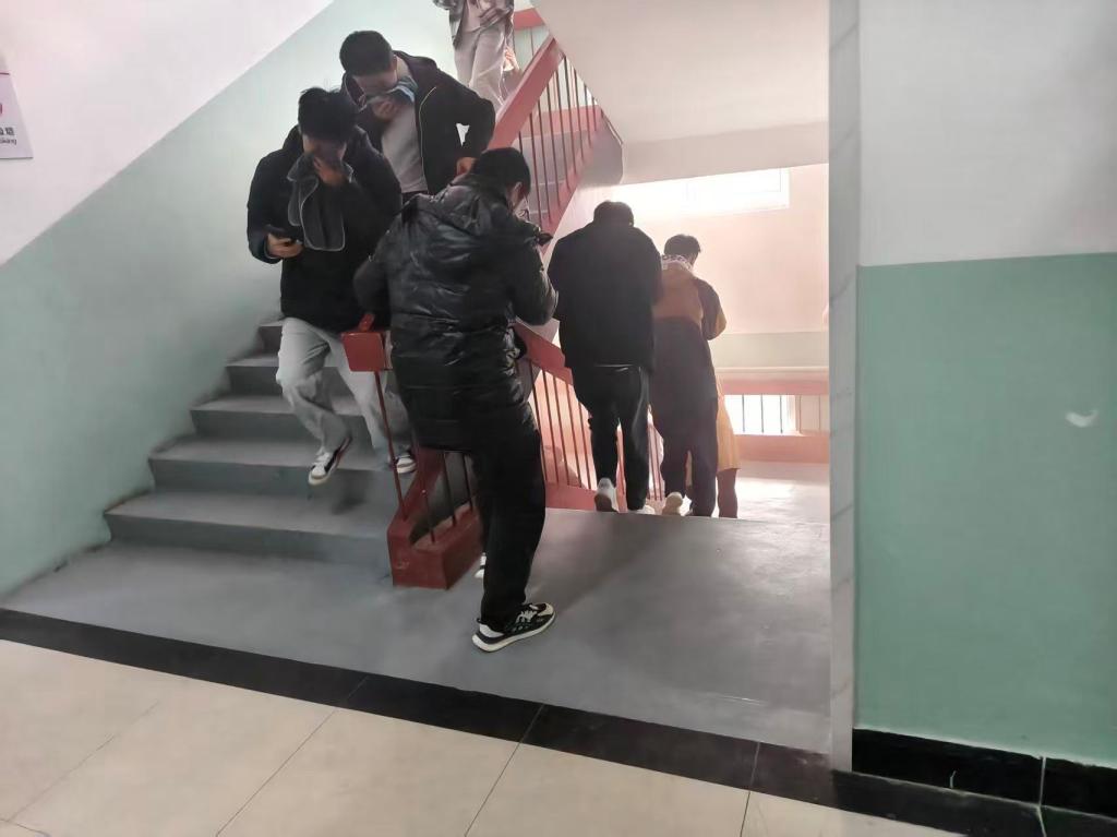 急促的火灾警报声响起,演练正式启动。本次演练模拟6号楼、7号楼突发“火情”现场浓烟弥漫、火势迅速蔓延。参与演练的同学们立刻响应,取出湿毛巾捂住口鼻,遵照“弯腰、有序、小跑”指令,在老师带领下以宿舍为单位沿指定通道快速疏散。全体人员均安全撤离至指定集结区域,撤离过程秩序井然、高效规范,无慌乱推挤情况。学校保卫处负责老师结合演练全程复盘总结,肯定师生应急表现,明确后续完善细节。