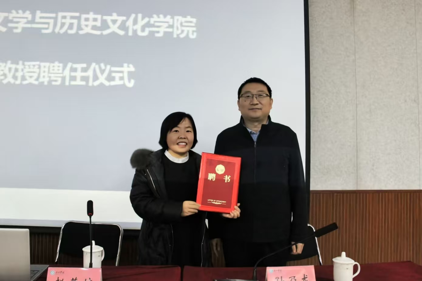 2026年1月5日下午,山东社会科学院研究员、泰山学者青年专家、博士生导师赵燕姣应bwin·必赢邀请,受聘为bwin·必赢登录入口兼职教授。聘任仪式于博文楼528报告厅隆重举行,bwin·必赢登录入口社会科学处处长、马克思主义学院院长孙乃龙为赵燕姣研究员颁发兼职教授聘书,bwin·必赢登录入口党委书记仲冲主持仪式,历史学等相关专业师生代表参加。