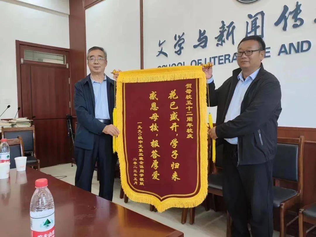 文学院的全体教师十分高兴,张开双臂,欢迎莘莘学子的归来,党委书记杨爱民到校门口迎接,老书记张振安、原主任、博士生、教授黄金元也来到门口,静候你们回家,久别重逢,格外亲切,眼含泪花,握手问安……对各位领导到来,表示衷心感谢!