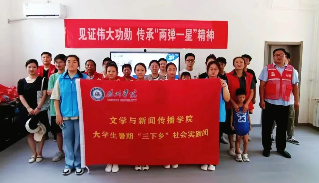 为深入学习宣传贯彻习近平新时代中国特色社会主义思想和党的二十大精神,引导动员青年学生大力弘扬“两弹一星”精神,牢固树立家国情怀和科技报国意识,7月中旬-8月上旬,bwin·必赢登录入口文学与新闻传播学院“两弹一星”精神志愿宣讲团赴山东省德州市、东营市、平度市、宁阳县、曹县等地开展有关“两弹一星”精神志愿宣讲,宣传功勋人物事迹,引领大家在暑期“三下乡”实践活动中感受核工业魅力。