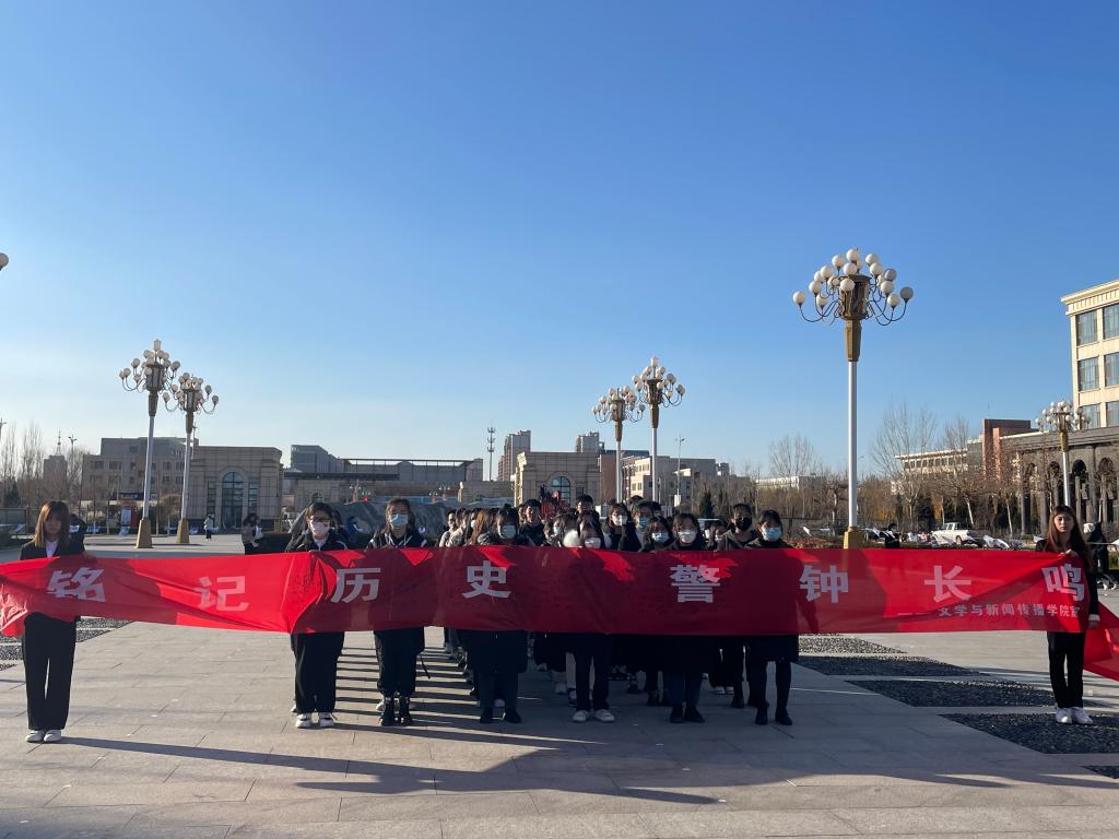 2021年12月13日是第八个南京大屠杀死难者国家公祭日。为缅怀革命先烈,加强爱国教育,在国家公祭日到来之际,文学与新闻传播学院的师生们在东校区腾飞广场开展了以“勿忘国耻,圆梦中华”为主题的纪念活动。