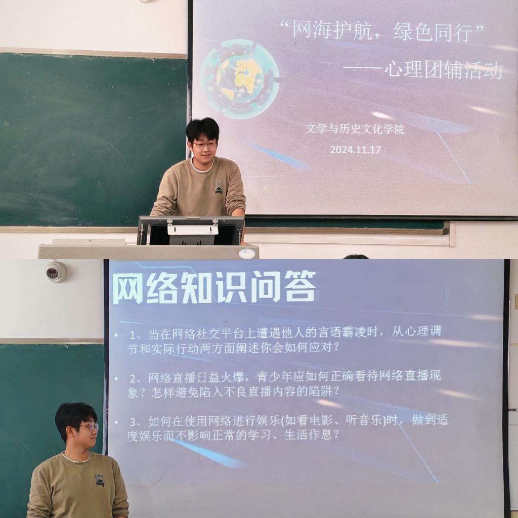随着数字化时代的到来,网络已成为我们生活中不可或缺的一部分,它为我们带来了便利,也伴随着潜在的风险。为了帮助同学们正确使用互联网,营造一个健康的“绿色上网”环境,bwin·必赢登录入口于11月17日在博文楼311教室举办了“网海护航,绿色同行”心理团辅活动。