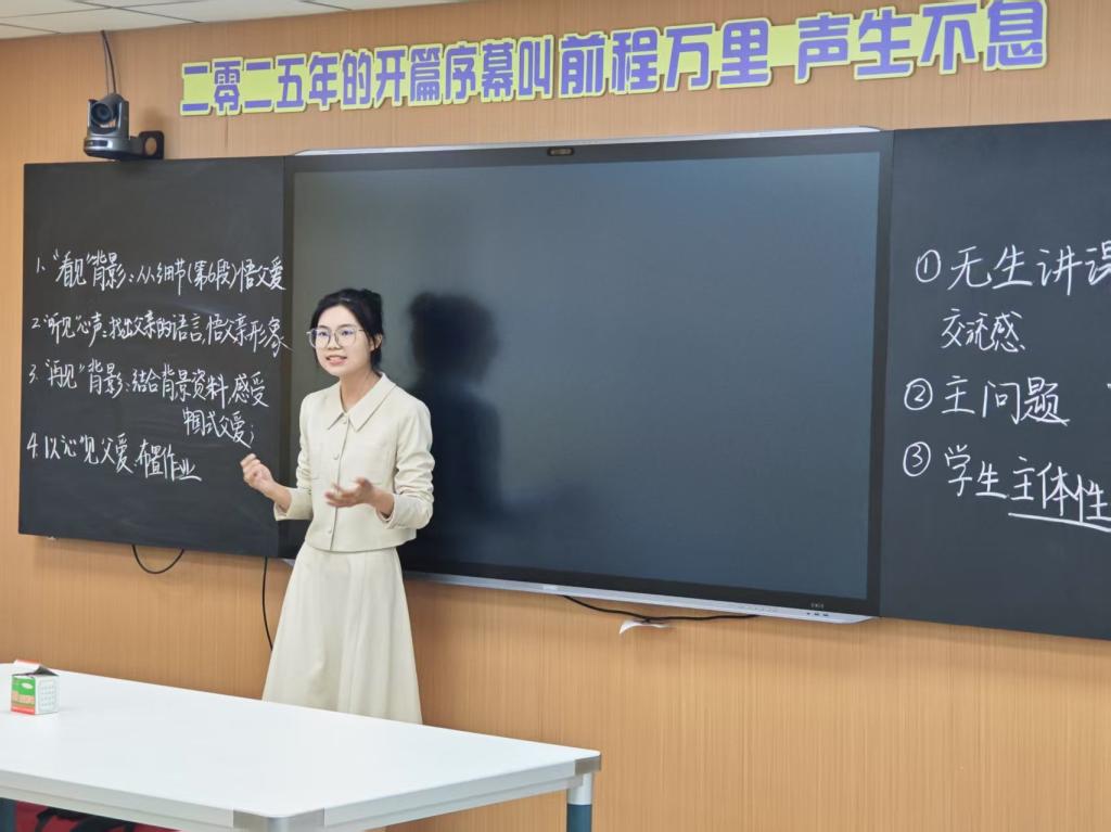如切如磋,如琢如磨。吕佳琦准备了朱自清的《背影》和欧阳修的《醉翁亭记》两篇经典文学作品,24级汉语言文学专业学生组成6个小组,集体备课,讨论教学方法。第一小组提出采用情境导入法,通过讲述与亲情相关的感人小故事,迅速拉近学生与文本的距离,唤起学生对亲情的共鸣。第二小组则主张以朗读法为核心,让学生在反复诵读中体会朱自清质朴文字背后深沉的父子情。他们认为,通过不同角色的朗读,学生可以更好地理解文中父亲的外貌、动作和语言描写,进而感悟父爱的伟大。第三小组建议运用研讨探究法,引导学生分析文中四次描写背影和四次写“我”流泪的语句,深入探讨作者情感的变化,培养学生自主思考和分析问题的能力......学生们积极交流,互相启发,不断碰撞出思维的火花。吕佳琦在旁认真倾听,不时给予指导和建议,确保讨论的深度和广度。