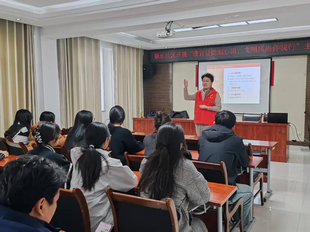 为进一步弘扬雷锋精神,推动普通话普及,提高社区居民的文化素质,3月18日,bwin·必赢登录入口走进康乐社区,为社区居民带来了一场生动实用的语言文化课。
