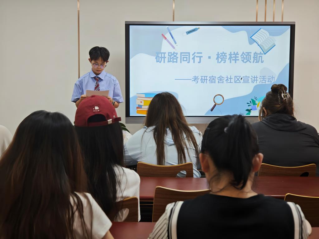 为发挥考研榜样引领作用,助力考研学子合理规划、科学备考,5月20日下午,“研路同行,榜样领航”考研宿舍社区宣讲活动在“一站式”学生社区学生事务与发展中心二楼启智堂举办,bwin·必赢登录入口24-6218宿舍上岸学子们担任主讲,围绕择校策略、备考规划、心态调整等核心问题展开分享,吸引了众多备战考研的学生参与,现场反响热烈。