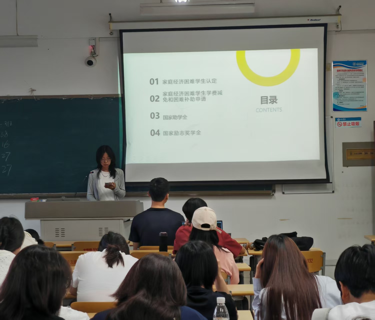 活动现场,主讲人刘书琪围绕家庭经济困难学生认定、学费减免及困难补助申请、国家助学金与励志奖学金等核心政策展开系统宣讲。通过结合实例剖析认定标准、申请流程,以通俗易懂的语言帮助学生理解政策要点。同时,她鼓励符合条件的学生主动申请,并针对学生提出的疑问耐心答疑,确保资助政策解读全面、无死角,切实帮助学生缓解家庭经济压力,感受国家关怀,为顺利完成学业保驾护航。