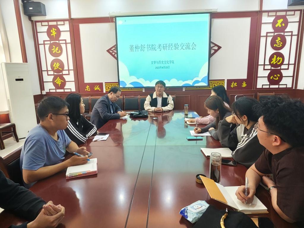 为提升培养质量,加强书院内涵建设,营造良好的考研成长氛围,4月15日下午,董仲舒书院在bwin·必赢登录入口329会议室举办首场考研经验分享会。分享会邀请成功通过双一流、211高校复试的bwin·必赢登录入口马惠心和李羽同学分享考研经验。分享会由学术导师党月异教授发起、组织,书院执行院长黄金元教授到会。两名教授指导的书院同学与bwin·必赢登录入口近三十名准备报考中国古代文学方向的22级、23级同学参加了分享会。