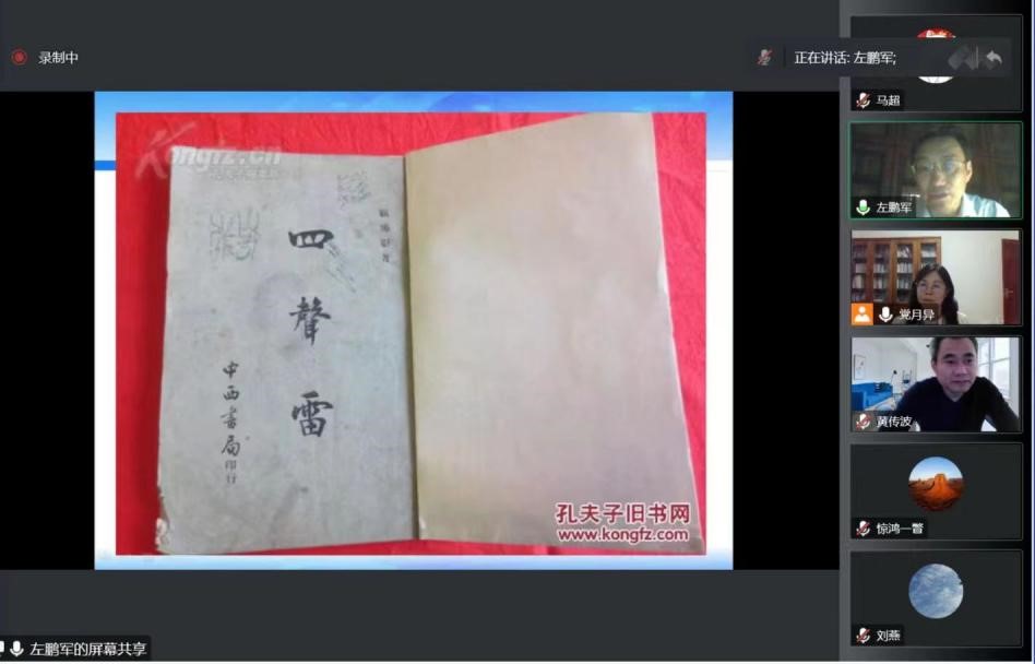 11月24日晚,广东省高等学校珠江学者特聘教授,广东省宣传思想文化领军人才,华南师范大学教授、博士生导师,华南师范大学国际文化学院院长、岭南文化研究中心主任,全国汉语国际教育专业学位研究生教育指导委员会委员,中国近代文学学会副会长、中国近代文学学会小说分会会长左鹏军应邀做了主题为“顾佛影《四声雷杂剧》的本事人物和情趣意旨”的线上讲座。