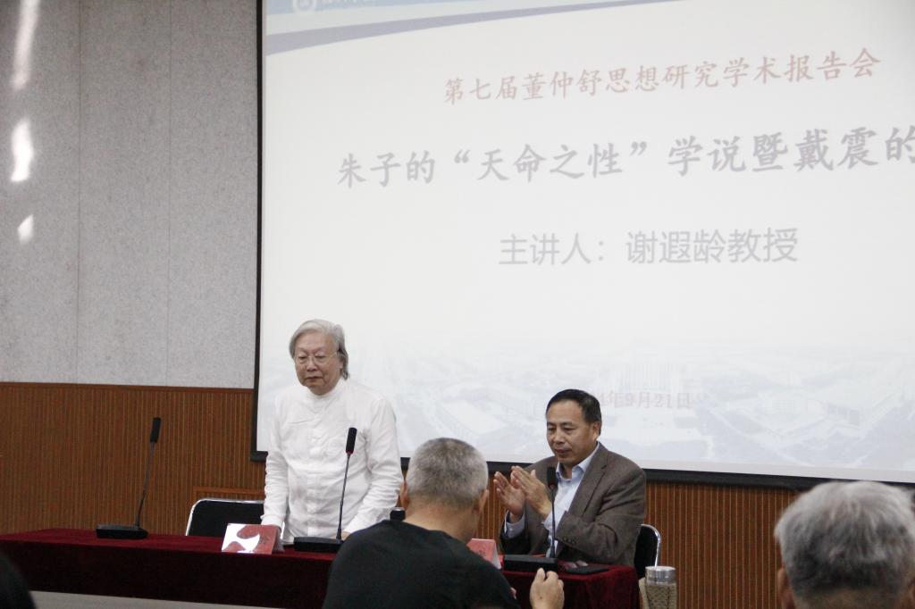 9月21日下午,第七届董仲舒思想研究学术报告会在学校举办。报告会邀请复旦大学谢遐龄教授和上海交通大学余治平教授进行学术报告,校党委委员,副校长刘印房教授主持报告会,bwin·必赢登录入口与马克思主义学院部分师生参加。
