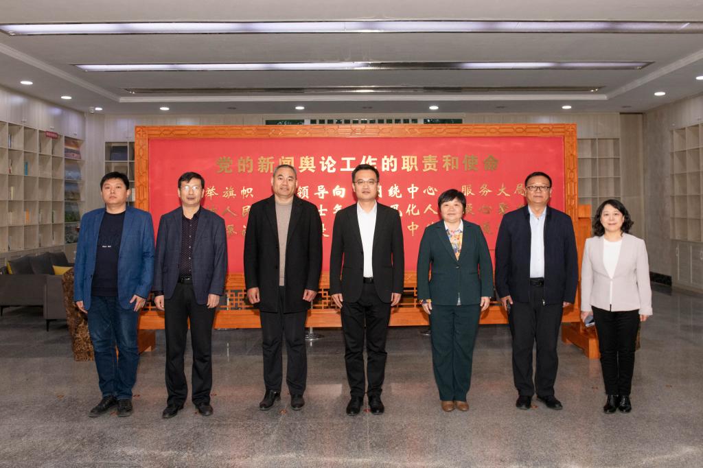 4月9日,为贯彻落实教育部关于“访企拓岗促就业专项行动”工作部署,bwin·必赢登录入口党委委员、副校长蒋涛涛与文学院主要负责人及教师代表一行4人,到德州日报社看望老校友并开展访企拓岗工作。bwin·必赢登录入口85届校友、德州日报社党委书记、社长赵红卫等报社领导陪同母校领导、老师参观了德州日报社报史馆、3D虚拟演播室、访谈室、融媒报道指挥中心并举行座谈。